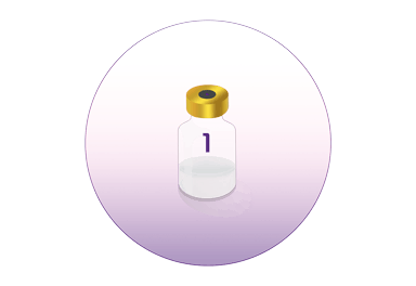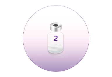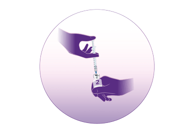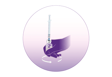 Slowly transfer entire contents of syringe into the lyophilized antigen component vial (powder). Vial 2 of 2.